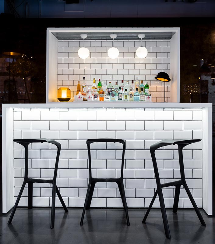 We also played on the fact their brand is fun, playful and quirky by reflecting their personality in a funky bar, which sits centrally within the space- welcoming guests on arrival and providing a point on which to centre when Innermost hold one of their many evening events.